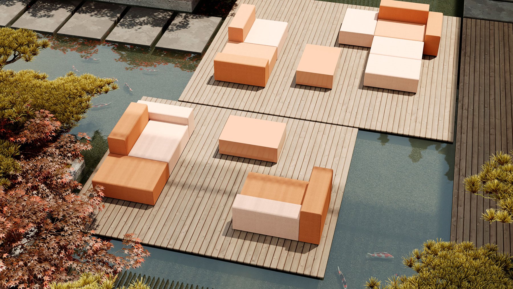 Francesc Rifé designed the BEAM collection for Oiside, outdoor furniture that references architecture with exaggerated volumes and a playful approach to the arrangement of planes that define the pieces, available in Iroko timber and aluminium versions. We can easily imagine the terrace surrounding a pool with these sofas, armchairs and chaise longue designs which can all be customised according to individual taste.