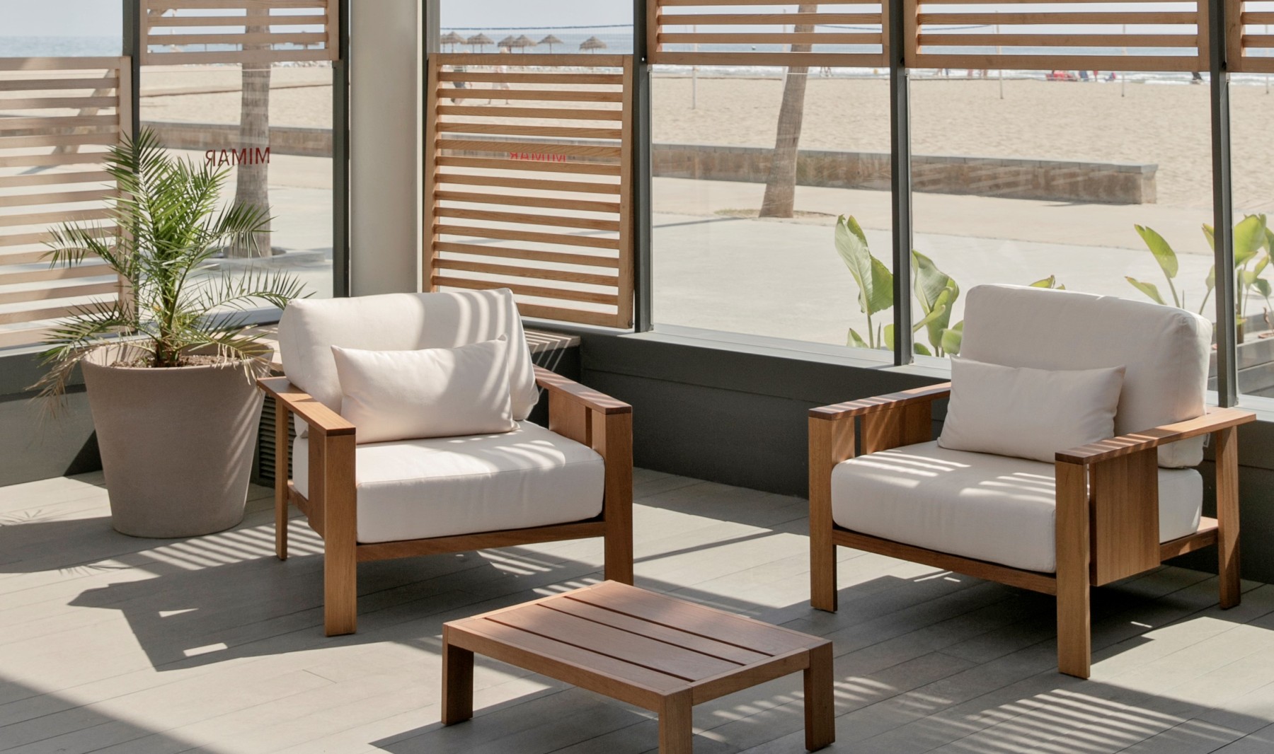 En el corazón de Playa de la Patacona en Alboraya, Valencia, se encuentra Mimar. Diseñado por Francesc Rifé, el interior y la amplia terraza de Mimar, amueblada con las sillas Beam de Oiside, reflejan cuidado y delicadeza.