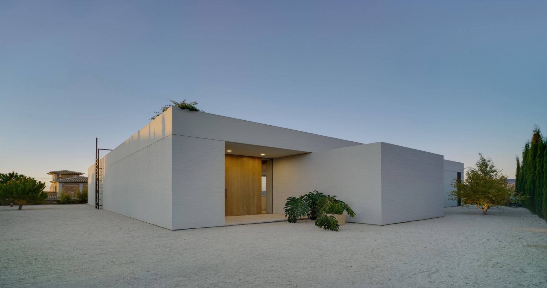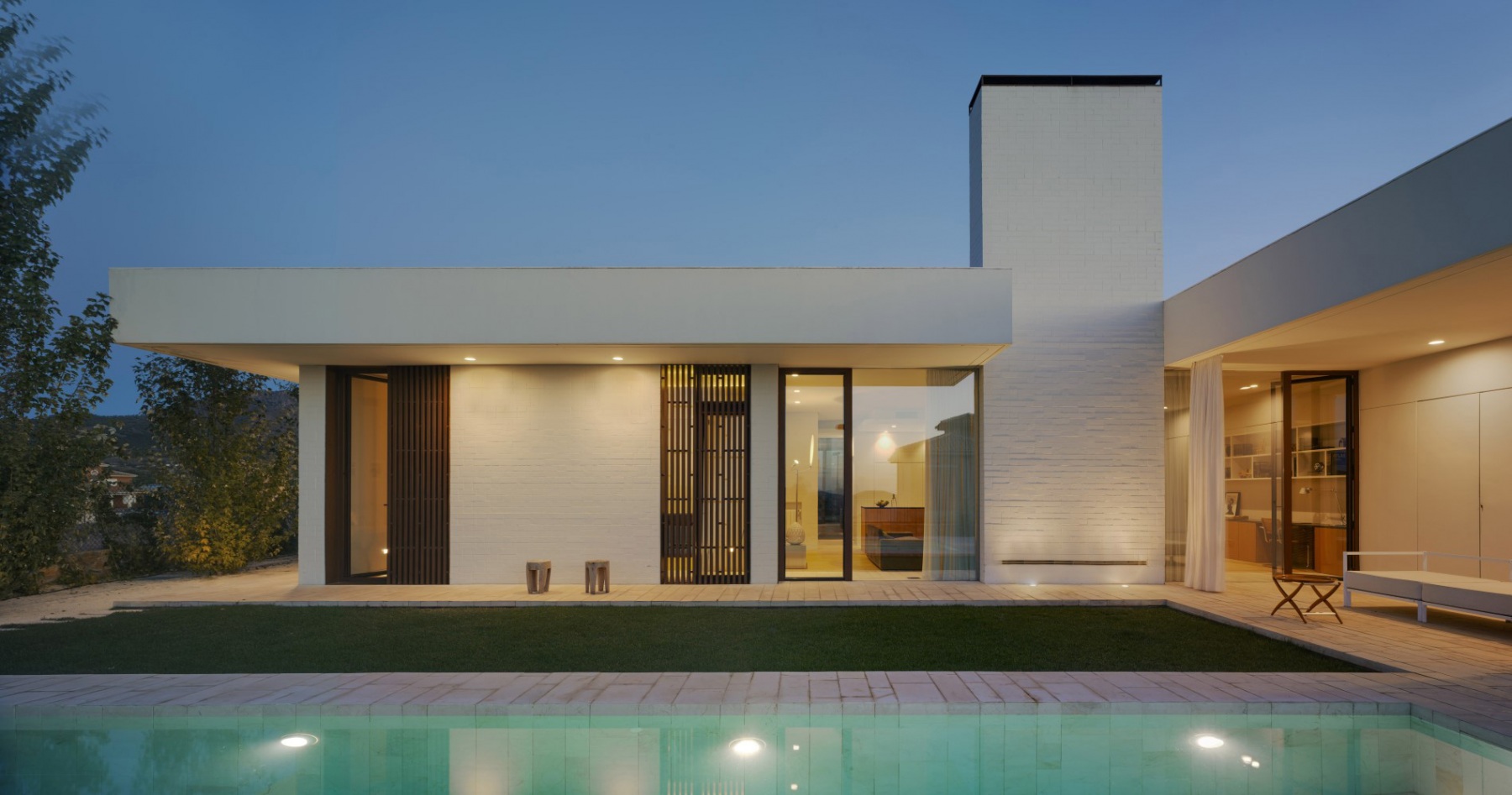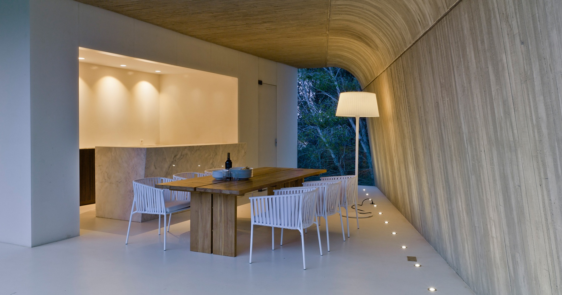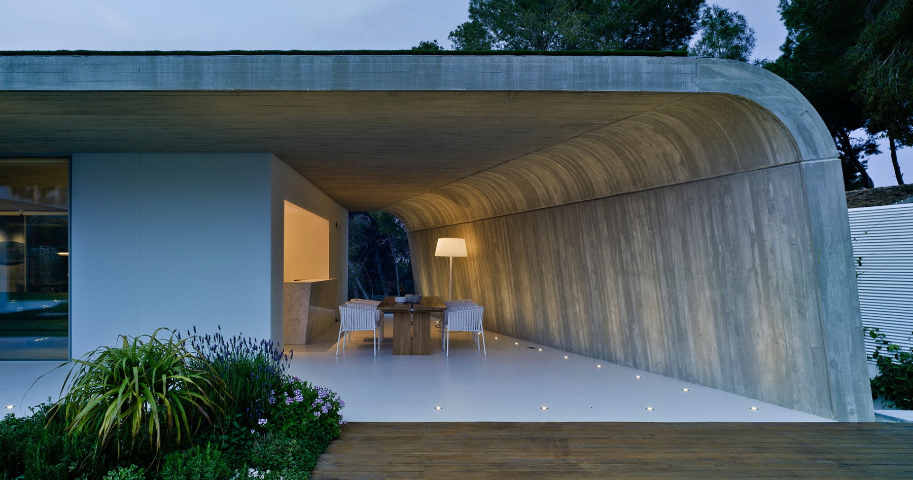 La casa está construida basándose en tan sólo tres materiales sin ser minimalista, logrando integrarse a la perfección en el entorno natural en el que se encuentra. Es una casa diseñada por un arquitecto para una arquitecta, priorizando la luminosidad