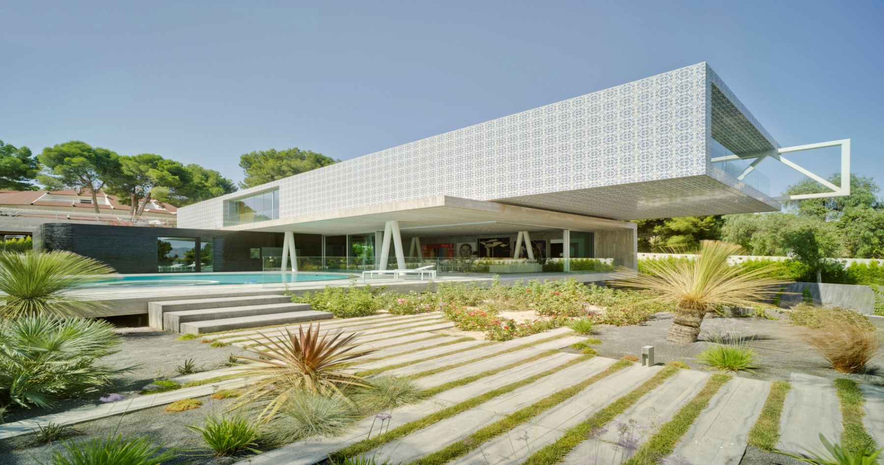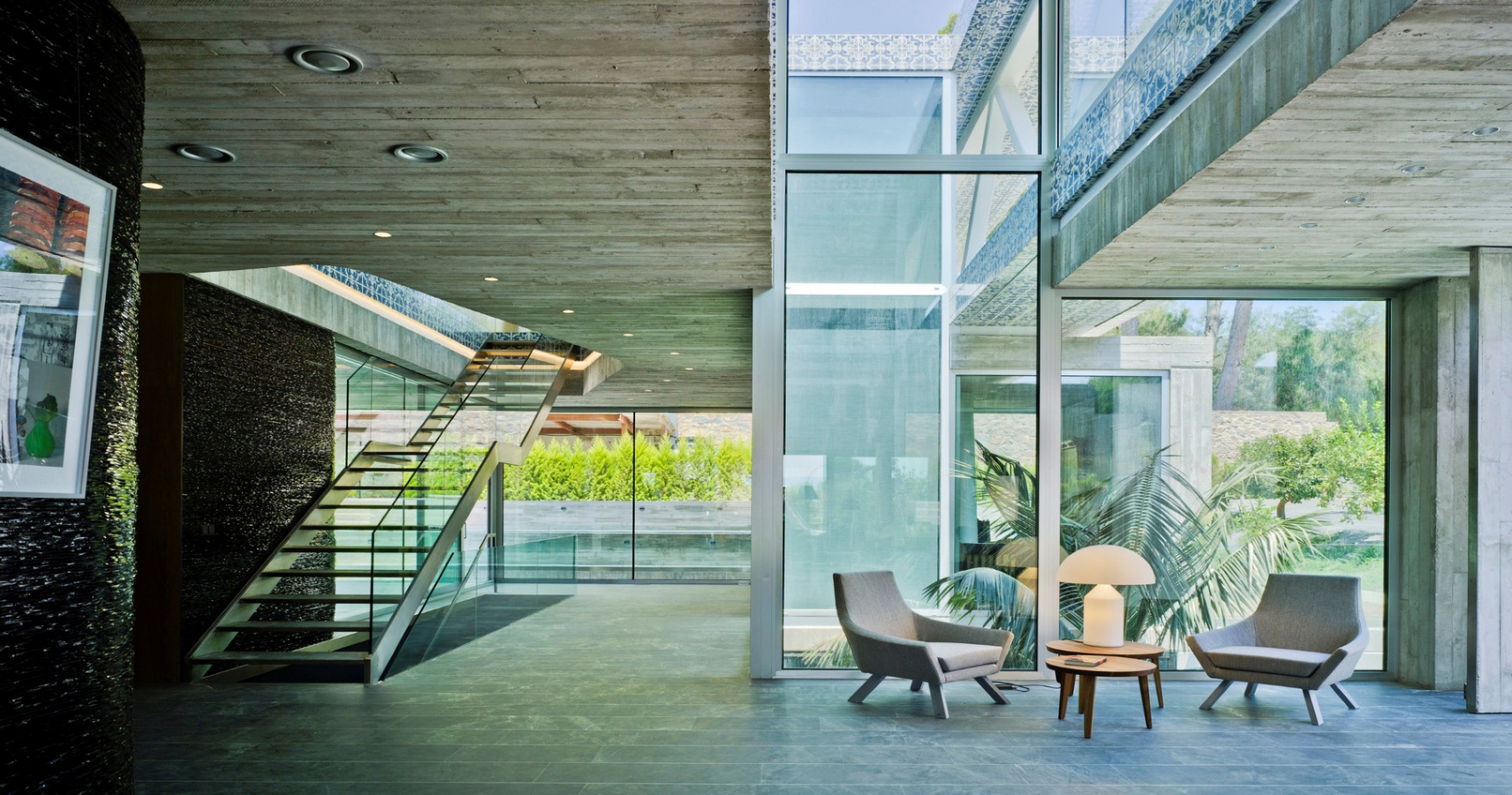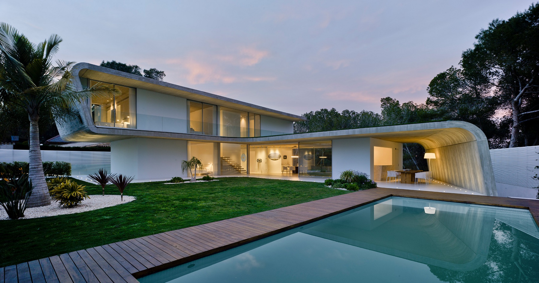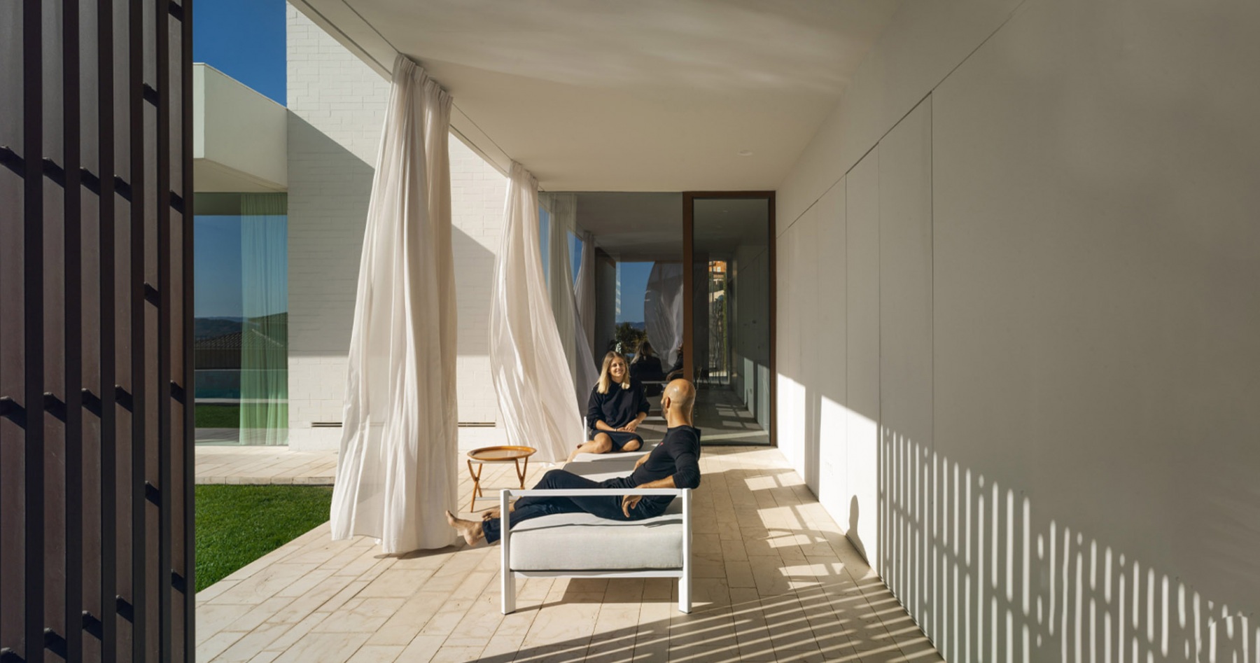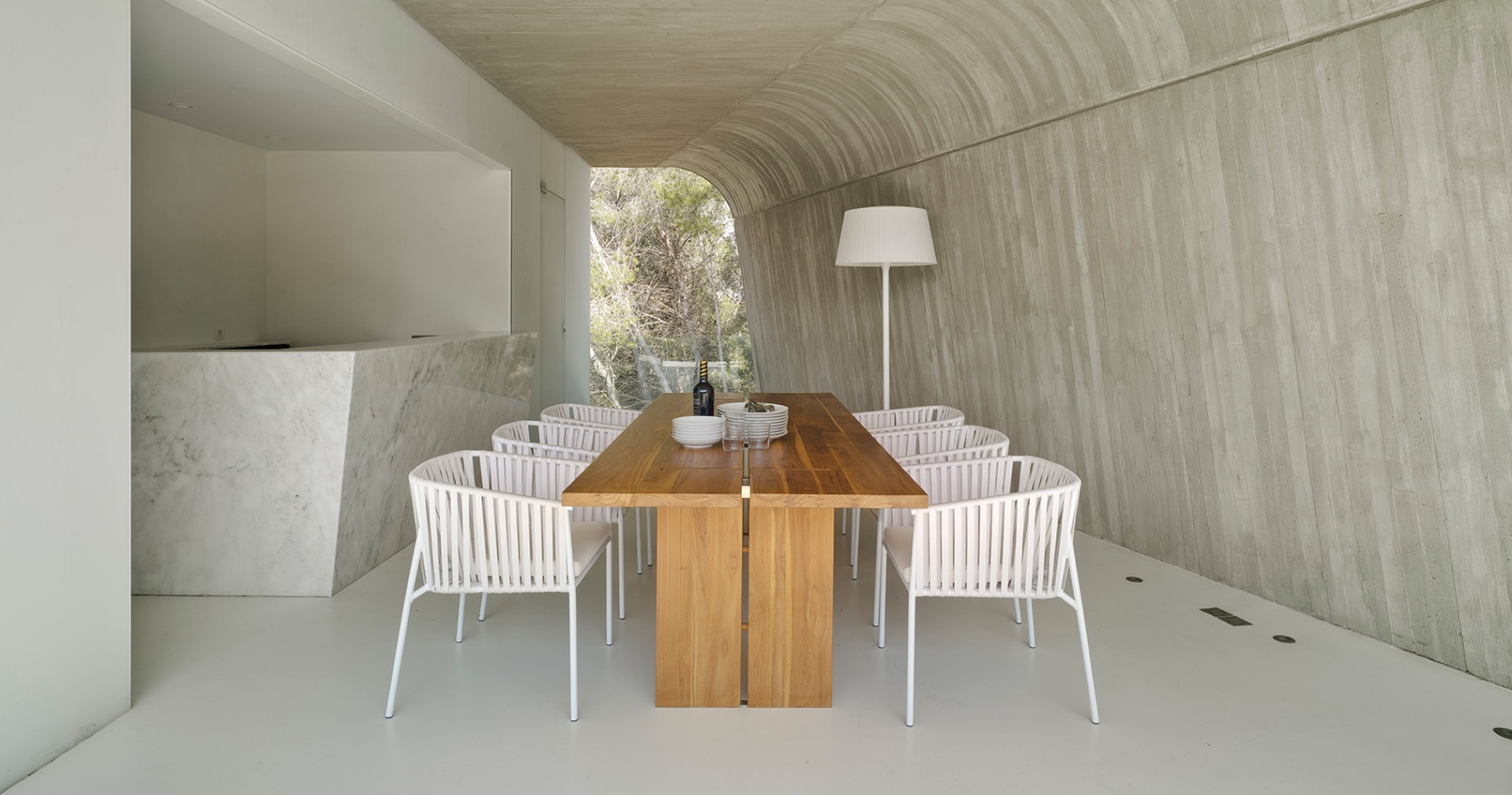 La casa está construida basándose en tan sólo tres materiales sin ser minimalista, logrando integrarse a la perfección en el entorno natural en el que se encuentra. Es una casa diseñada por un arquitecto para una arquitecta, priorizando la luminosidad