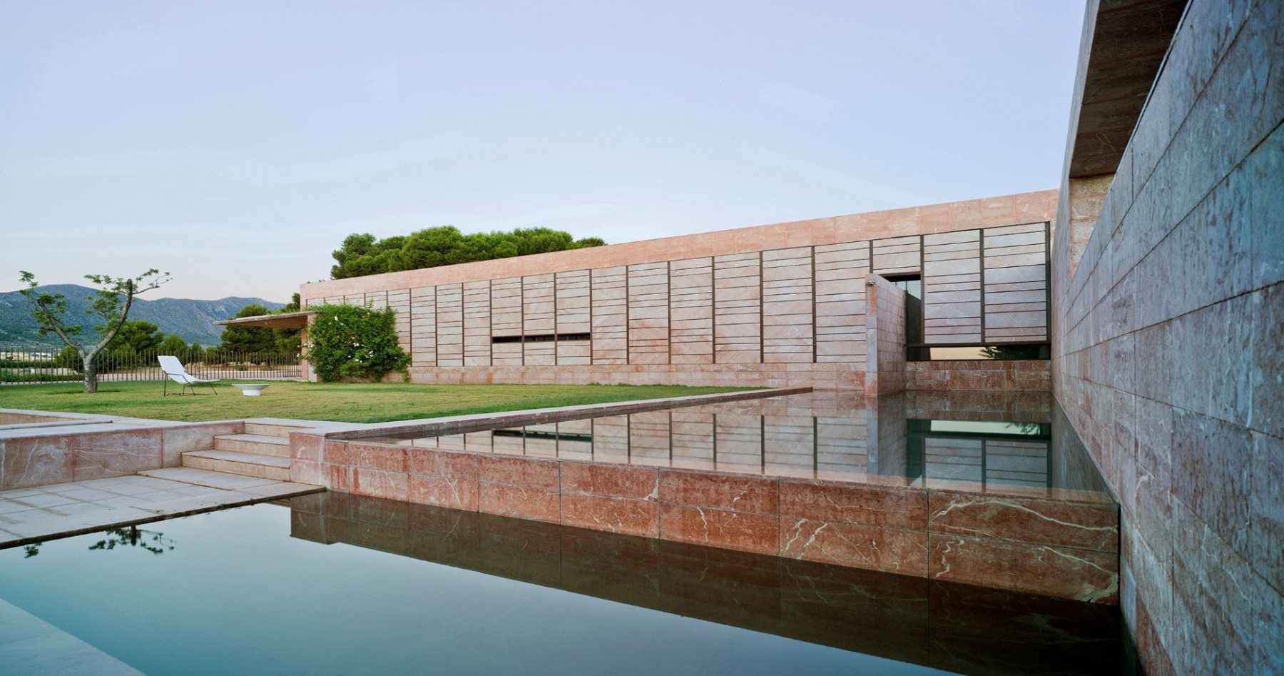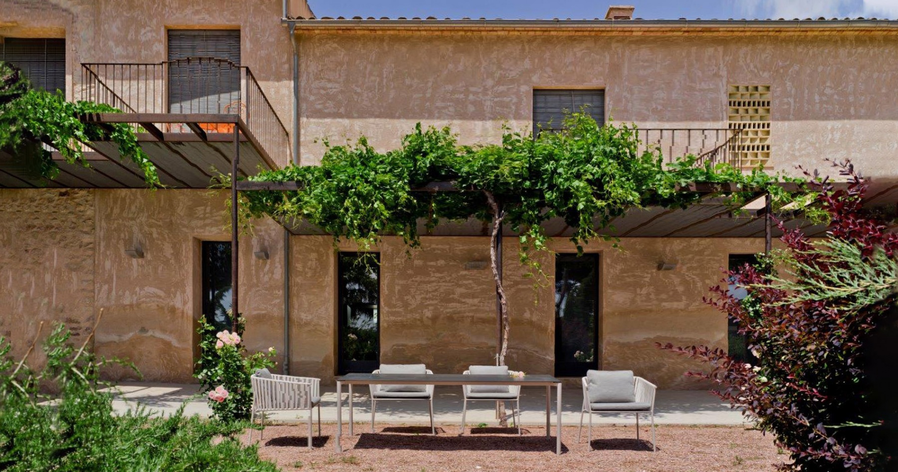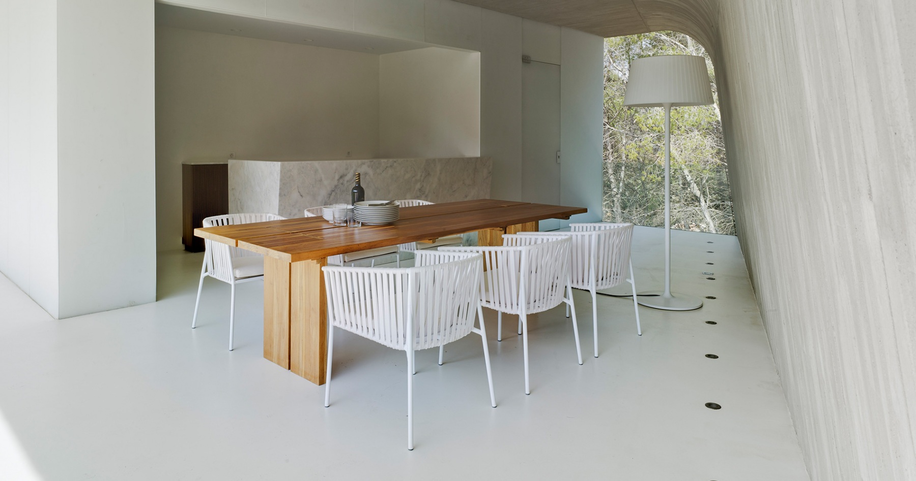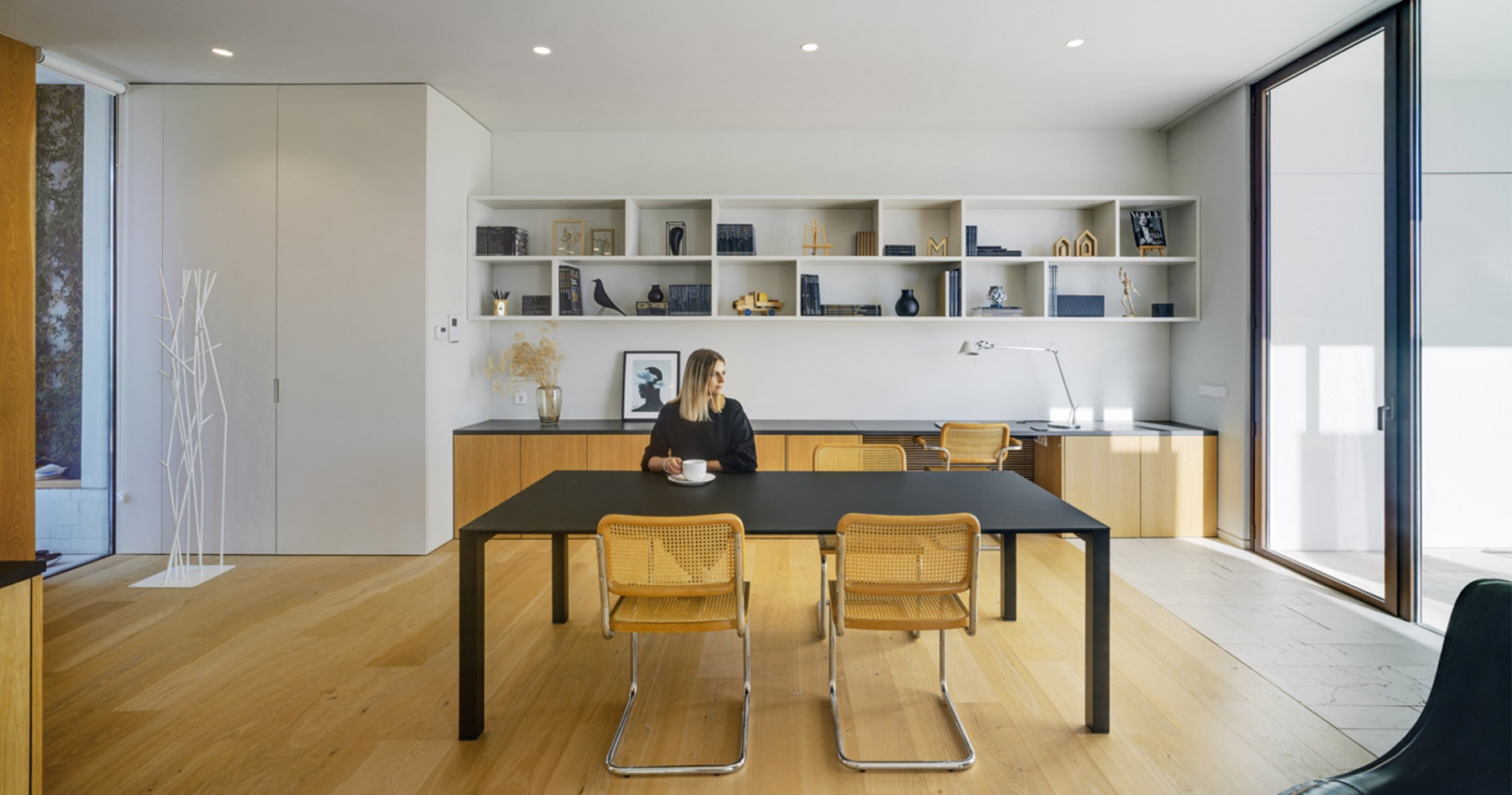 La casa está construida basándose en tan sólo tres materiales sin ser minimalista, logrando integrarse a la perfección en el entorno natural en el que se encuentra. Es una casa diseñada por un arquitecto para una arquitecta, priorizando la luminosidad