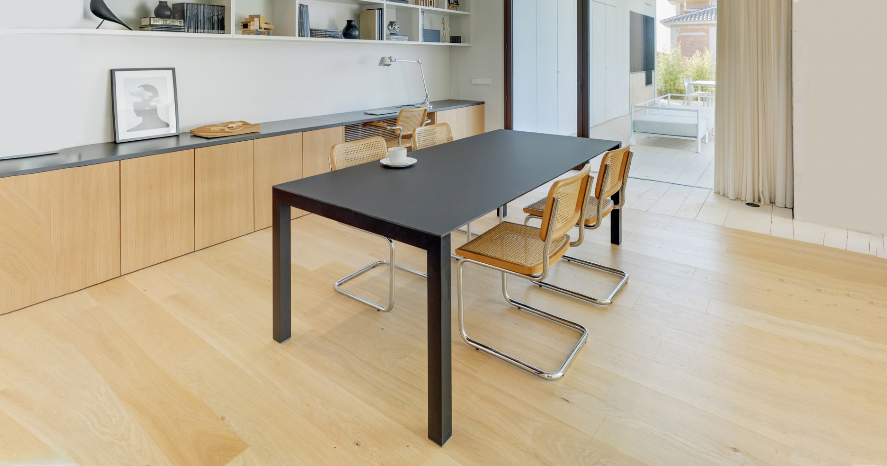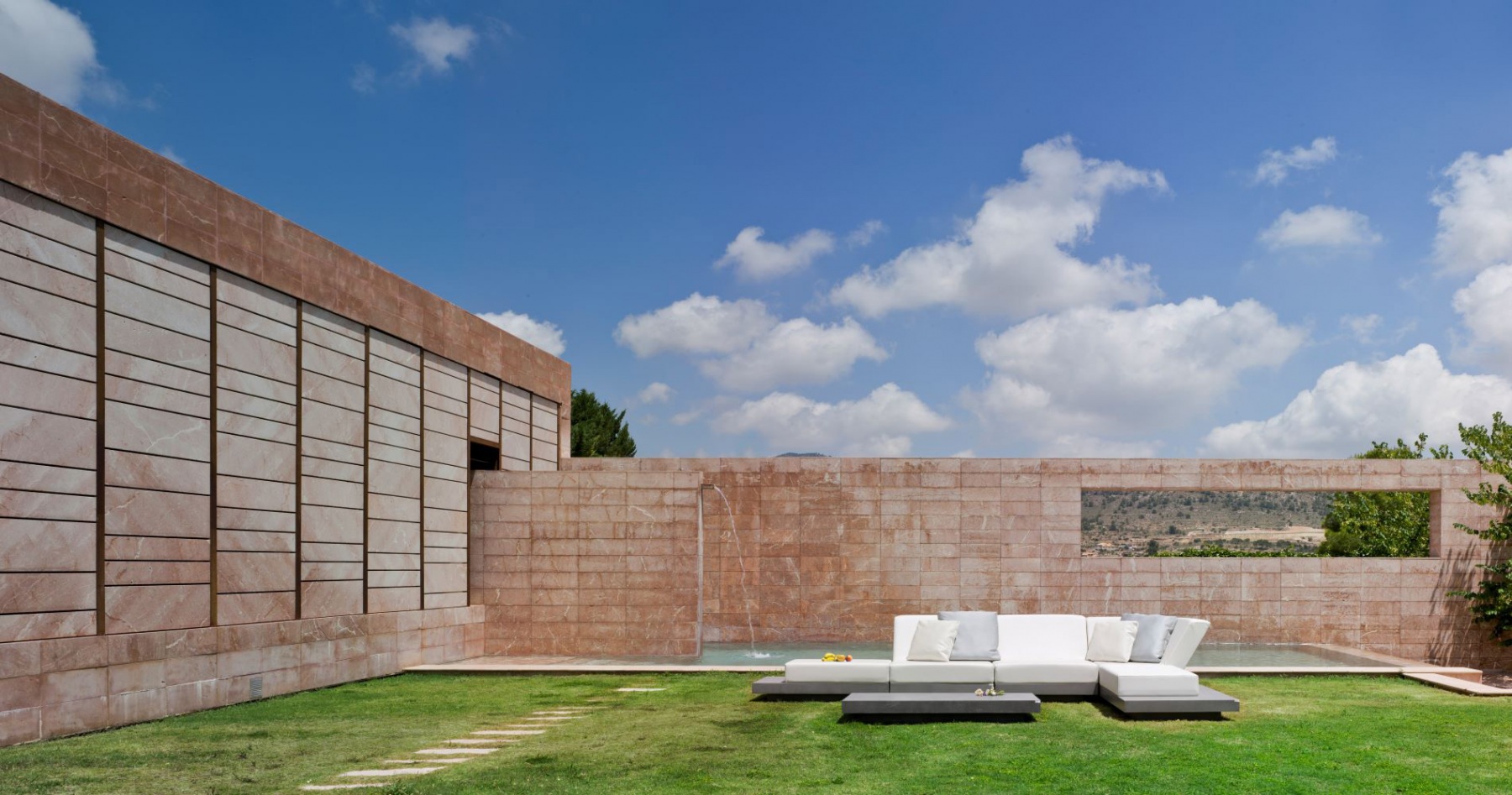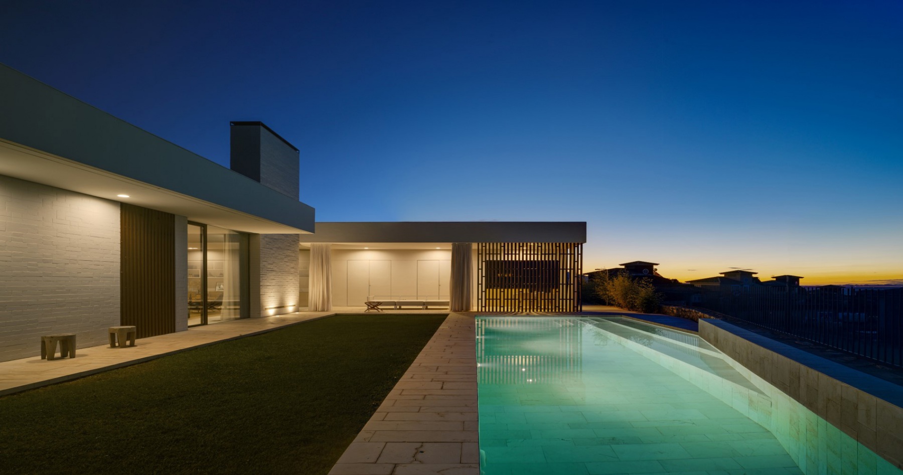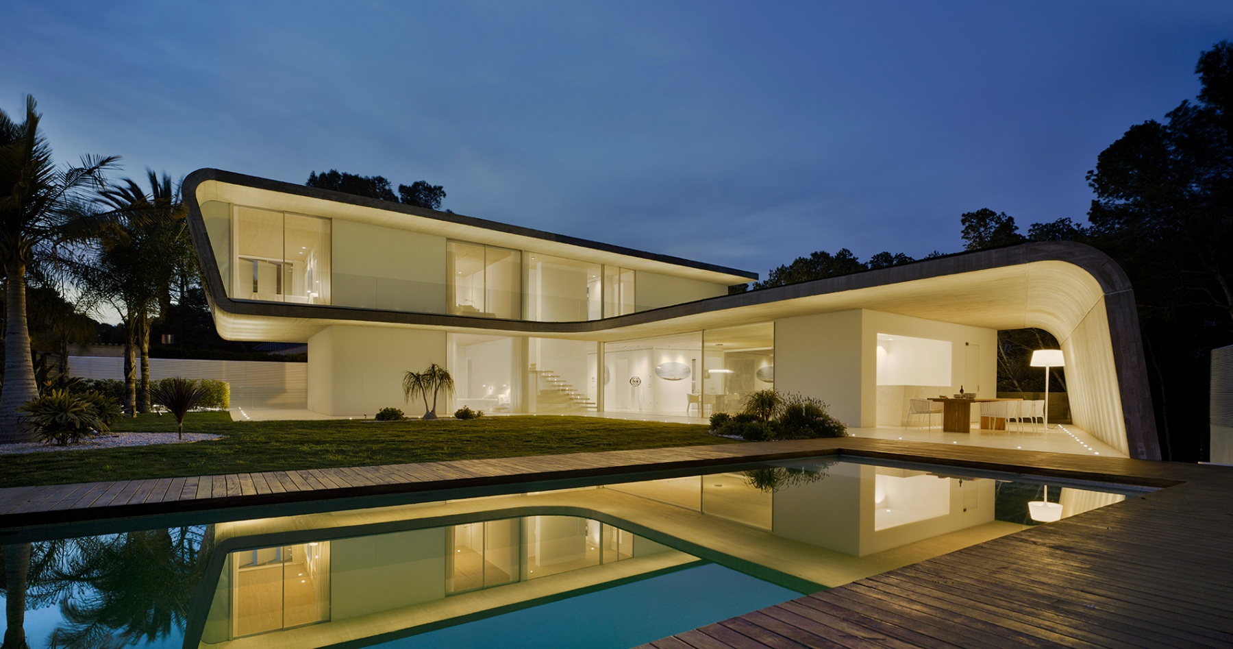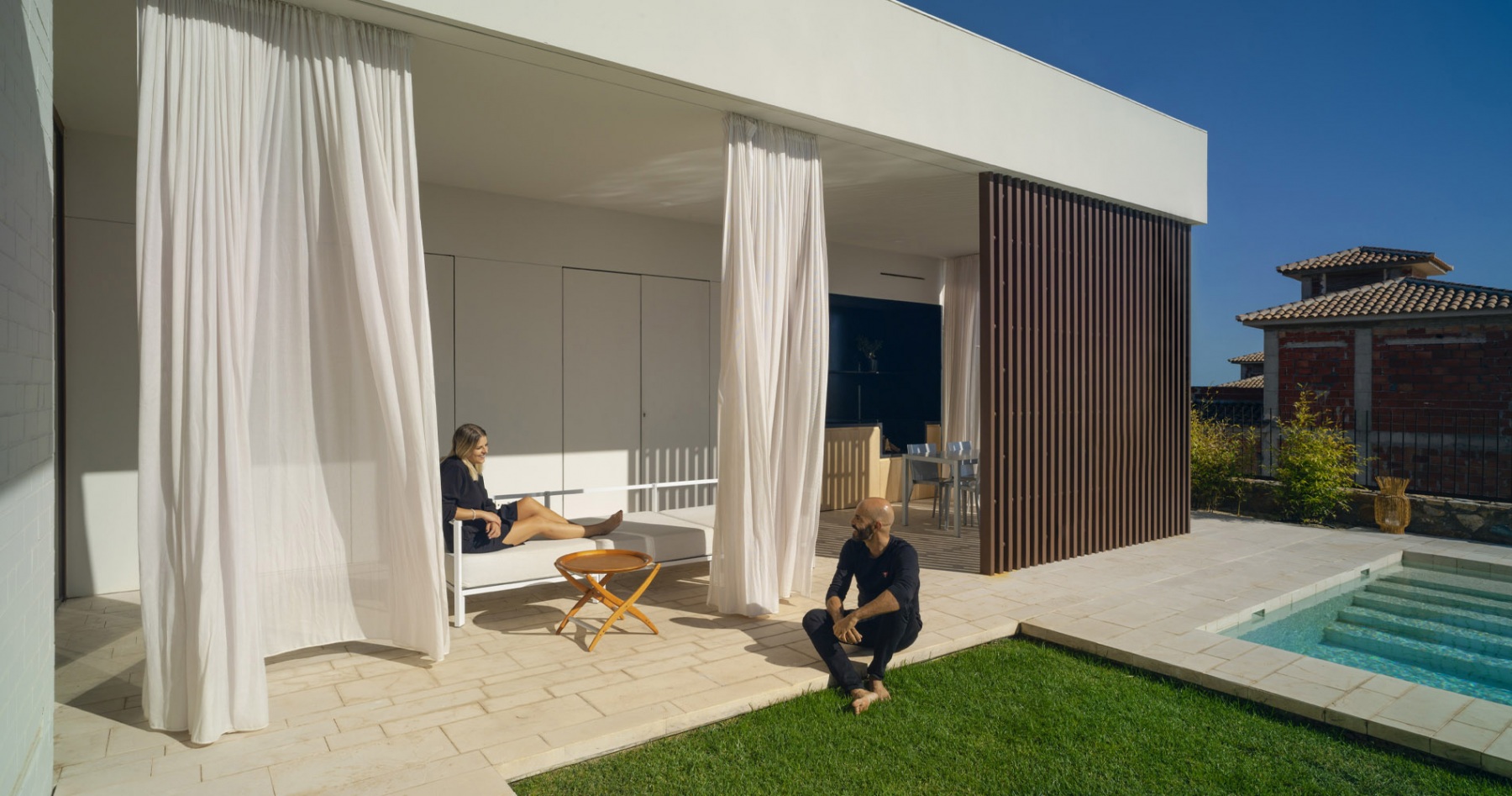 La casa está construida basándose en tan sólo tres materiales sin ser minimalista, logrando integrarse a la perfección en el entorno natural en el que se encuentra. Es una casa diseñada por un arquitecto para una arquitecta, priorizando la luminosidad